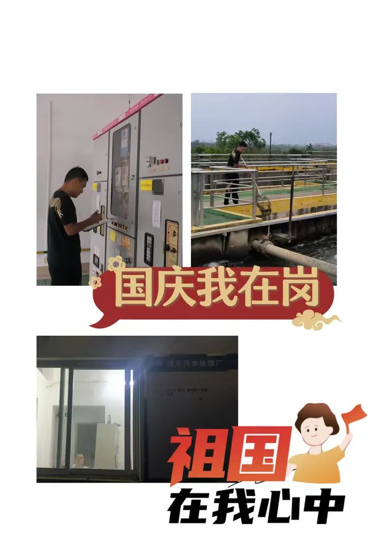 国庆期间演丰污水处理工作人员始终坚守在第一线,加强巡检及工艺运行调度,确保污水处理安全稳定达标生产。